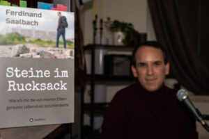 Die ganze Geschichte zu "Steine im Rucksack" beginnt mit der Autobiographie unseres Vorsitzenden Ferdinand Saalbach. Der hat am im September 2019 auf Anraten seiner Therapeutin seine Geschichte aufgeschrieben. Weil er zeigen möcht, wie scheinbar normal wir uns manchmal fühlen, auch wenn unser Leben und unsere familiären Beziehungen alles andere als das sind.